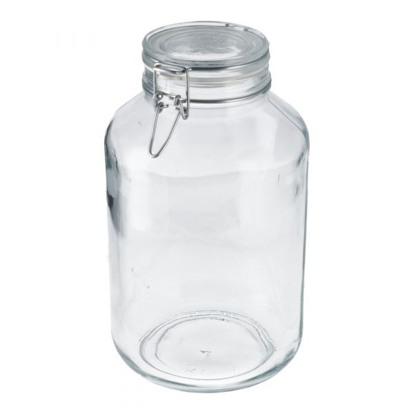 The authentic conserving jar / clasp jar suitable for storage or decoration. Glass jar withclasp closure of 5 liter. Ideal for keeping coffee, rice, pasta, sweets etc. fresh. Also for storage of fruits on alcohol or syrup. Suitable for use in the freezer and dishwasher.