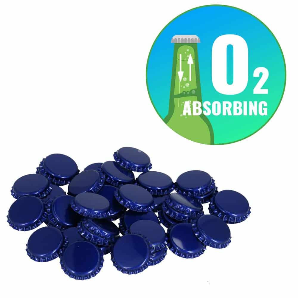 O2 absorbing crown caps, equipped with a special liner, which absorbs the oxygen that is in the bottle neck after bottling.