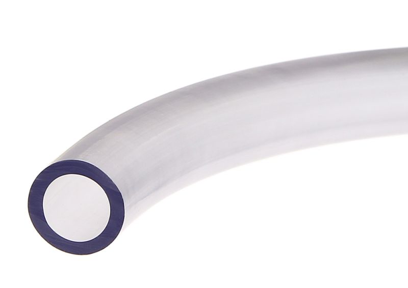 Very high quality Food-grade PVC hose. White transparent. Acid and alcohol-resistant. Moderately flexible, NOT resistant to high temperatures.