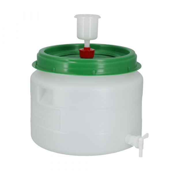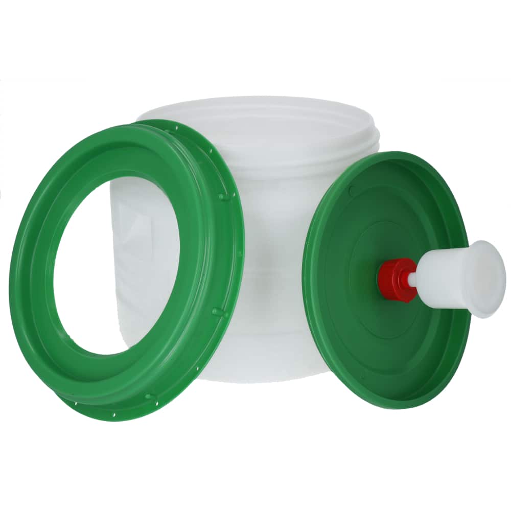 Sturdy plastic fermenter of 31 litres made of foodgrade HDPE. With airtight screw cap, spigot, big airlock and additional screw cap (to replace the airlock). Easy to carry (even full) thanks to the integrated handles. The big opening makes is very easy to clean.