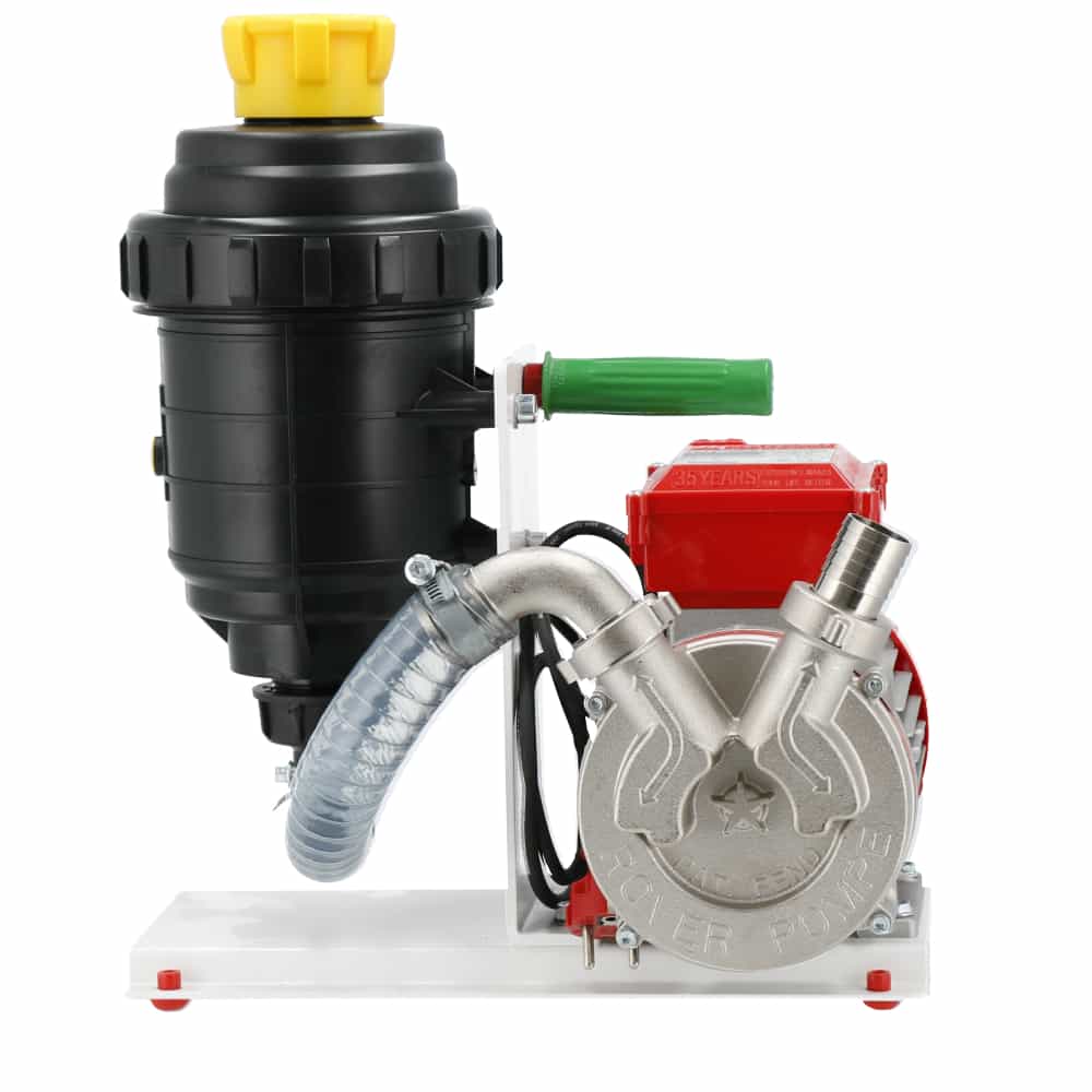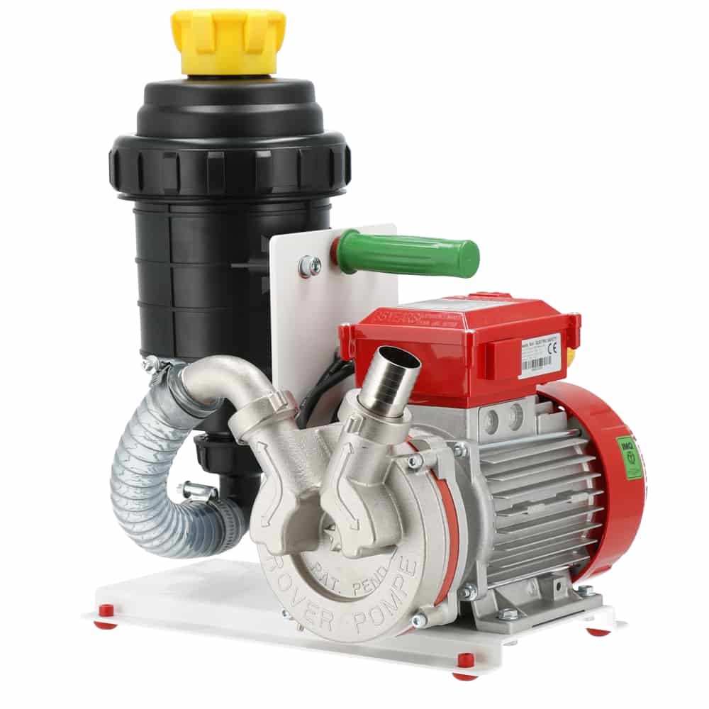 Great Value basket filter with electropump, especially intended for pre-filtration of liquid foods such as must, fruit juices, low alcohol herbal extracts etc. Convenient compact design with handle.
