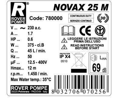 Electropump for liquids NOVAX 25 M