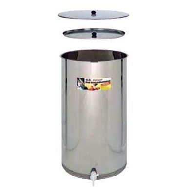 Juice can be stored for months in this stainless steel barrel, because the lid floats on the surface of the juice. Can also be used as a fermentation vessel for cider, wine or beer. Content 65 litres, height 77 cm, diameter 30 cm. Weight: 8 kg.