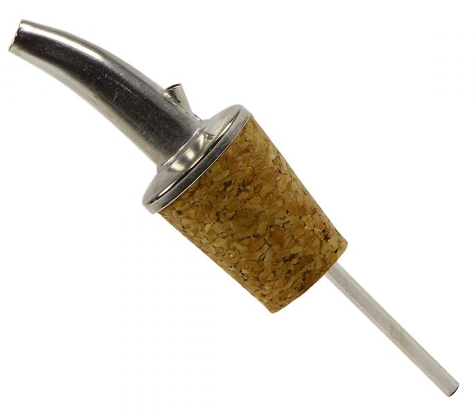 Spout stainless steel/cork wide pointy short model. Fits on wine and oil bottles with a diameter of 18-20 mm.