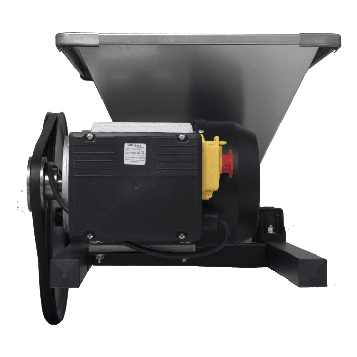 GRIFO Obstmühle zum Mahlen/Zerkleinern und Verarbeiten von kernlosem Obst wie Äpfeln und Birnen. Das Modell besteht aus hochwertigen Materialien und ist praktisch und einfach zu bedienen. Er besteht aus einem Trichter aus rostfreiem Stahl und einem emaillierten Stahlrahmen. Der daran angebrachte leistungsstarke Motor ermöglicht die Bewegung aller Mechanismen, wie zum Beispiel der gezahnten Walzen zum Zerkleinern und Pressen der Früchte. Die Rollen aus Nylon und die Zähne aus rostfreiem Stahl sind für den Kontakt mit Lebensmitteln geeignet. Darüber hinaus ermöglichen die speziellen Halterungen eine Verstellung der Rollen um wenige Millimeter.