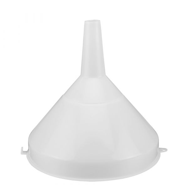 Trichter Ø 25 cm aus weißem Kunststoff. Alkohol- und säurebeständig. Mit Sieb