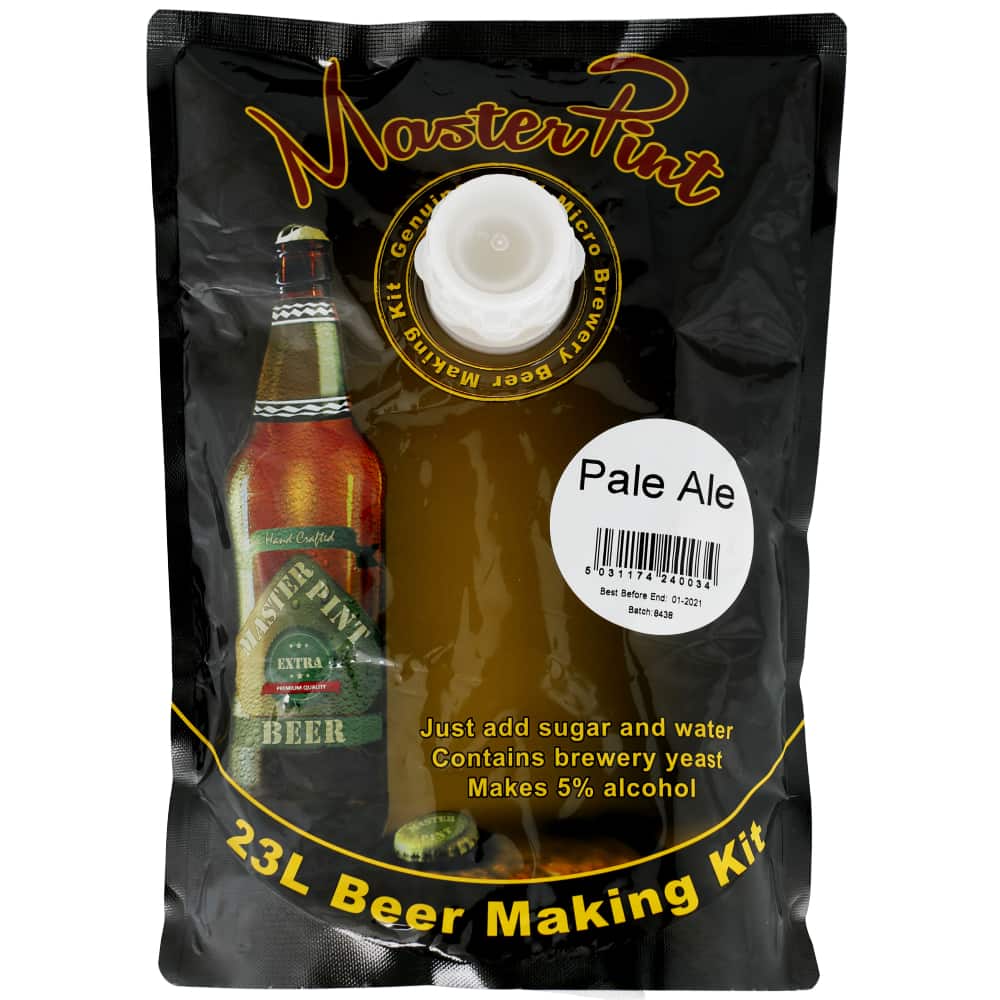 Ein MasterPint Malzextrakt Braukit ergibt 23 Liter Bier der Spitzenklasse. Die MasterPint Bierkits sind in einem Plastikbeutel verpackt. Jedes Kit enthält auch bereits Hefe. Es müssen nur noch Wasser und 1 kg Brauzucker hinzugefügt werden! Das Brauen zu Hause war noch nie so einfach.