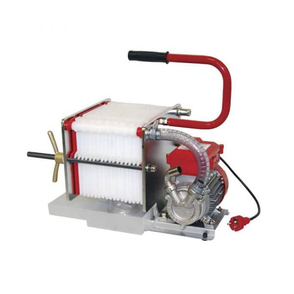 Edelstahl-Plattenfilter 18 Platten 20 x 20 mit elektrischer Pumpe. Handliches Tischmodell mit Griff und Tropfschale. Pumpe mit Edelstahlgehäuse (ohne Bypass) Pumpe kann in 2 Richtungen laufen und auch separat eingesetzt werden. Geeignet zum Filtern von leicht trüben Lebensmitteln (Wein, Bier oder Saft).