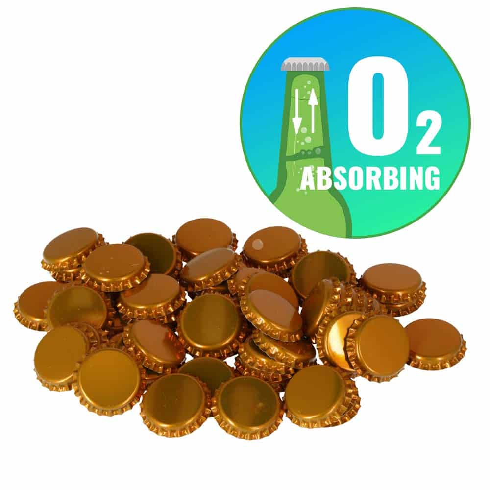 O2 absorberende kroonkurken, voorzien van een speciale zuurstof absorberende liner, deze absorbeerd de zuurstof die zich na het bottelen in de flessenhals bevindt.