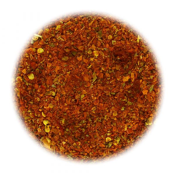 Samenstelling: Chilipeper, paprika, zwarte peper, kerrie (bevat o.a. geelwortel, mosterd en koreander), basilicum, majoraan en oregano.