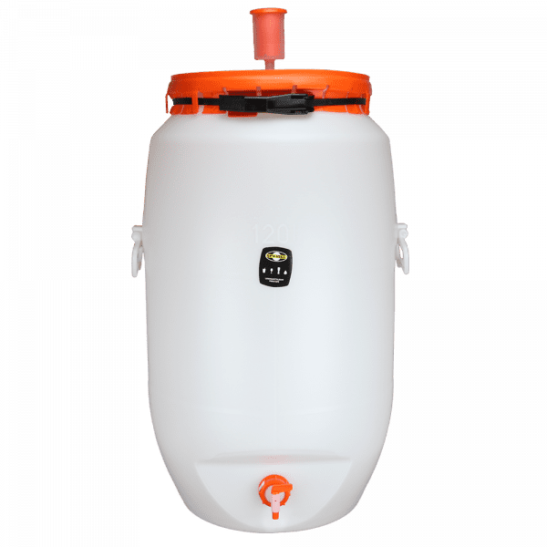 Speidel 120 liter gistingsvat, compleet rond vat met kraan en waterslot, zuur & alcoholbestendig hoogwaardig voedselveilig kunststof.