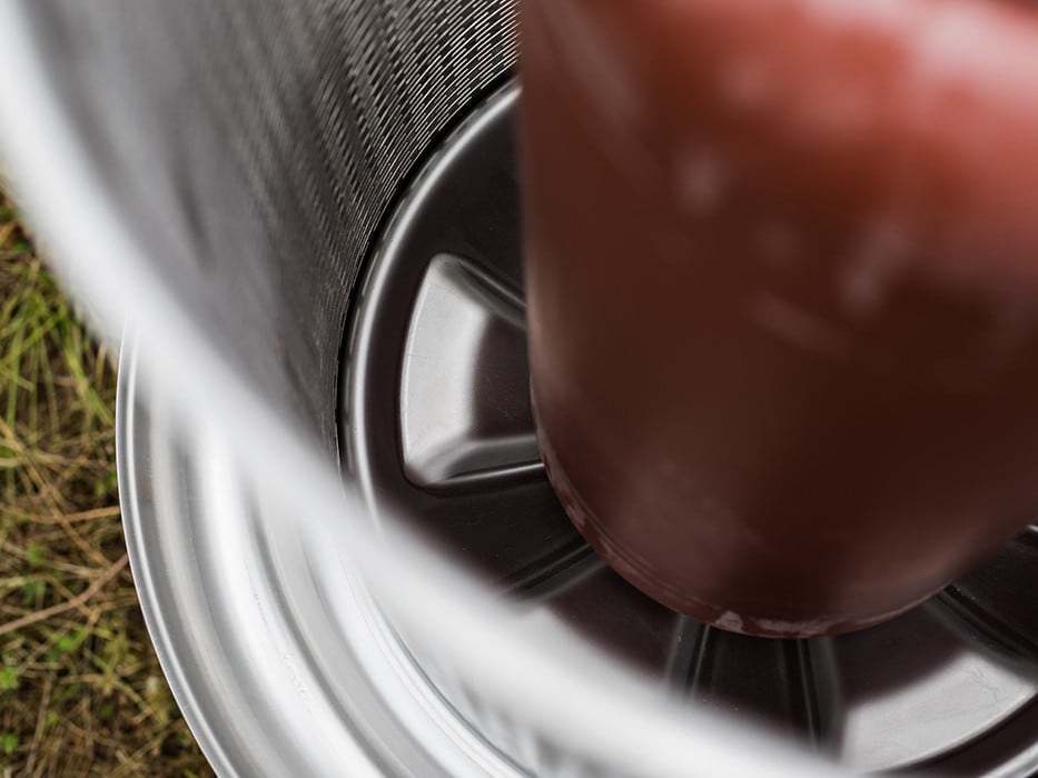 Budgetvriendelijke en moderne fruitpers van Speidel die functioneert met een opblaasbare centrale balg, aan te sluiten op een waterkraan. Door de waterdruk zet de rubberen balg snel uit en wordt het sap naar de geperforeerde buitenkant geduwd. Inclusief zak.