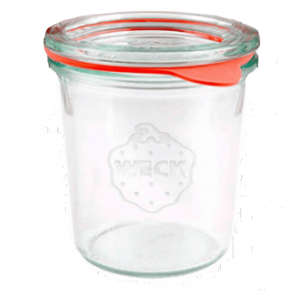 Originele Weck Glas Stortmodel kompleet met deksel diameter 60 mm en rubberring inhoud 140ml.